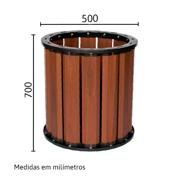 Lixeira sem tampa 67L em madeira plástica 50cm