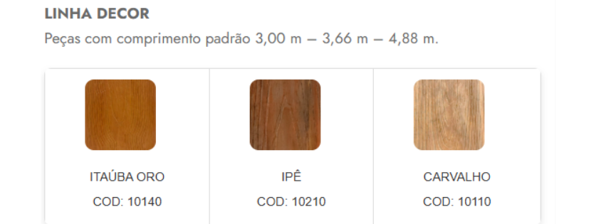 Peças com comprimento padrão 3,00 m – 3,66 m – 4,88 m – 6,00 m.